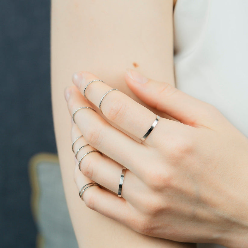 The rings' slim design allows for easy stacking, enabling you to mix and match to create your unique combinations.