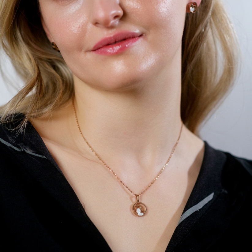 The pendant hangs gracefully from a delicate chain, ensuring a comfortable and flattering fit for any wearer.