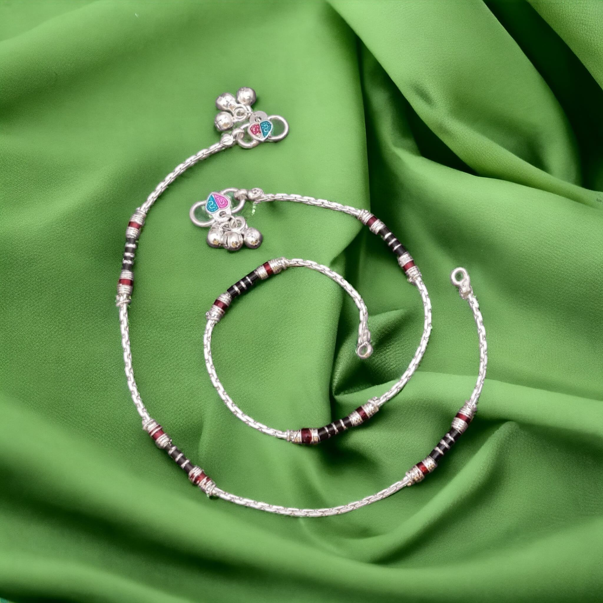 Elevate your style and celebrate cultural heritage with our Black Red Enamel Pipe Silver Plated Asian Indian Payal Anklet.