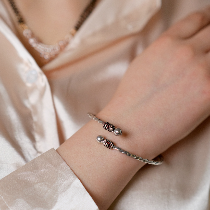 Our bangle is meticulously crafted from high-quality silver-plated metal, ensuring durability and longevity.