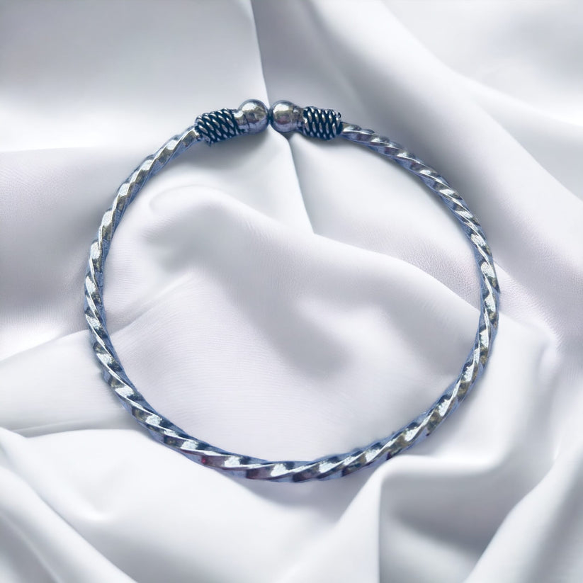 At the heart of this aesthetic lies the Oxidised Indian Gypsy Silver Open Kada Bangle.