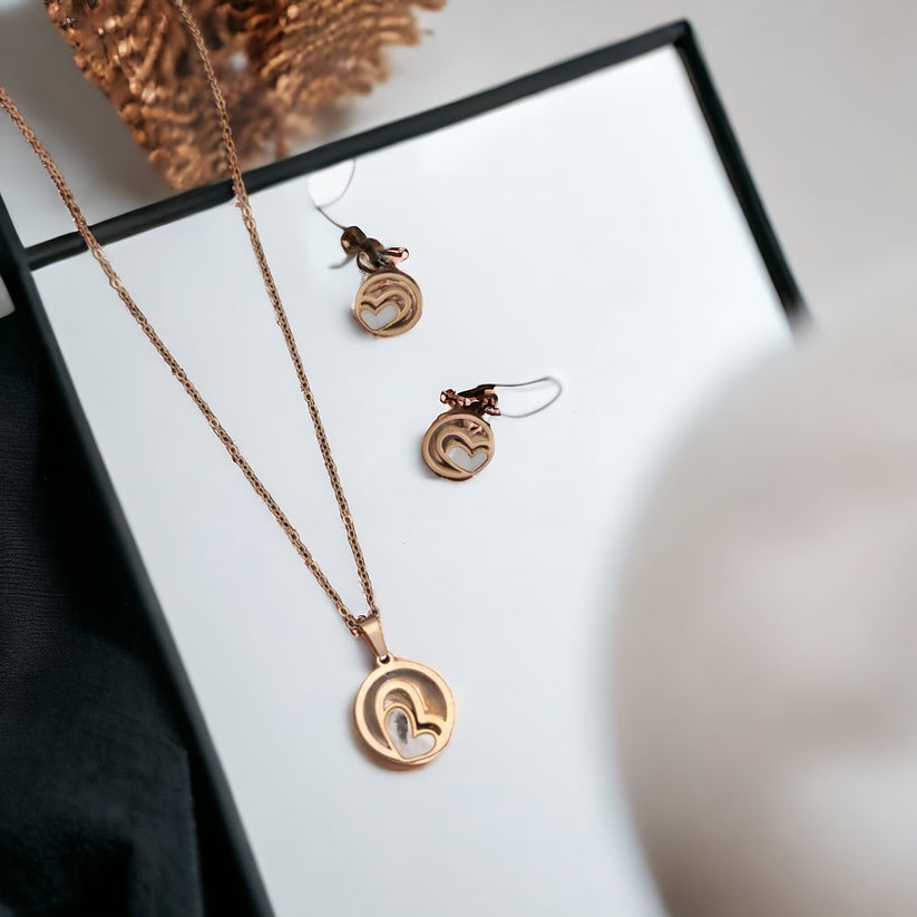 Whether gifted to a loved one or worn as a personal adornment, the heartfelt symbolism of the heart pendant and earrings adds depth and sentiment to every wear.