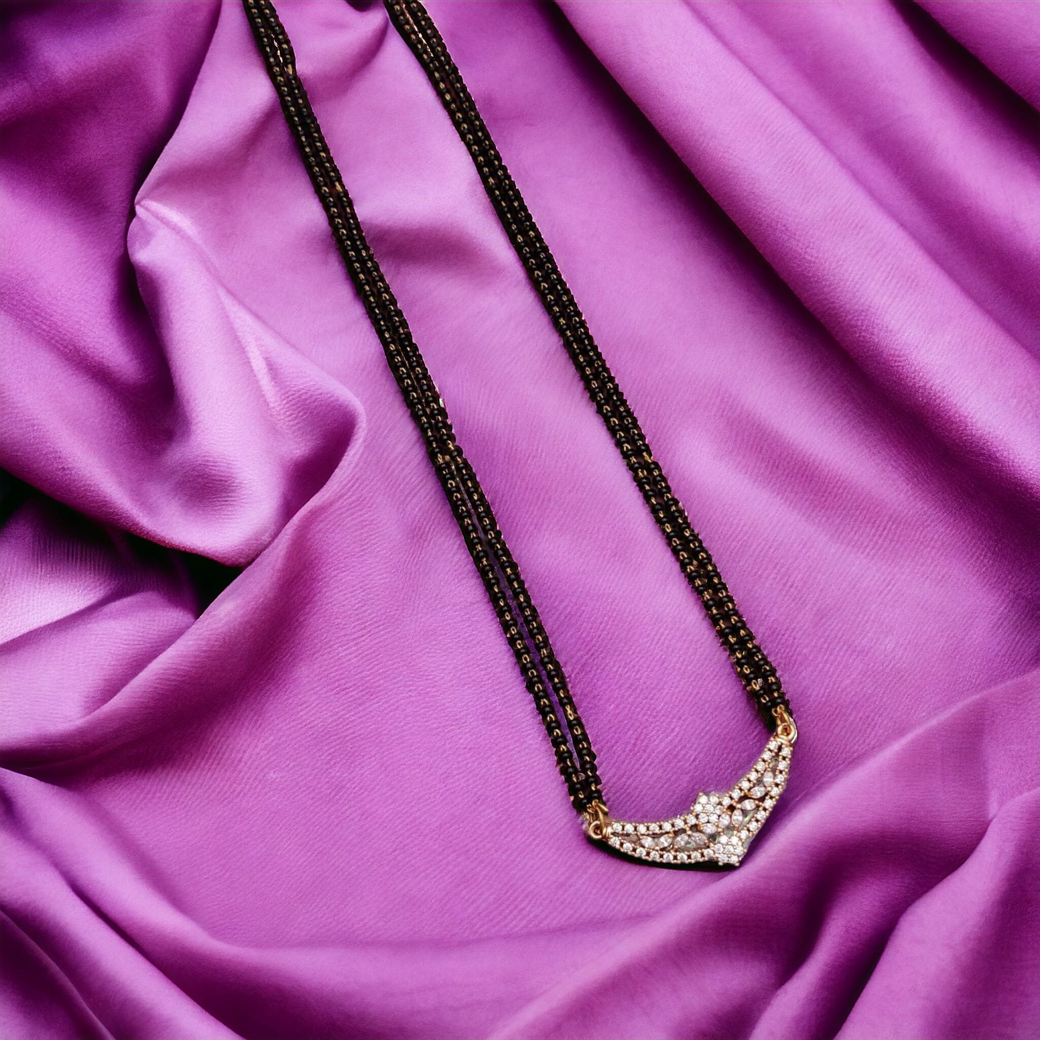 Indian Nazaria Zircon Dangle Mangalsutra Black Beads Earring and Necklace