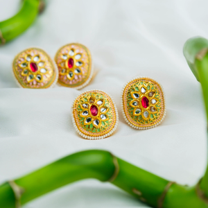 The Floral Meenakari Kundan Studs present an eloquent tale of India's treasured jewellery art.