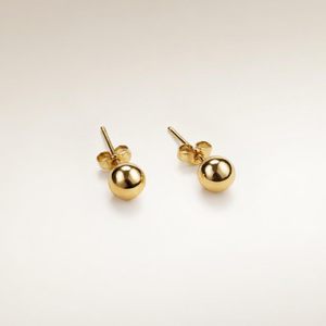 Minimalist jewellery never goes out of style, and these gold ball studs are a wardrobe staple. Their clean spherical silhouette makes them perfect for layering with other earrings or wearing alone for a refined, polished look.