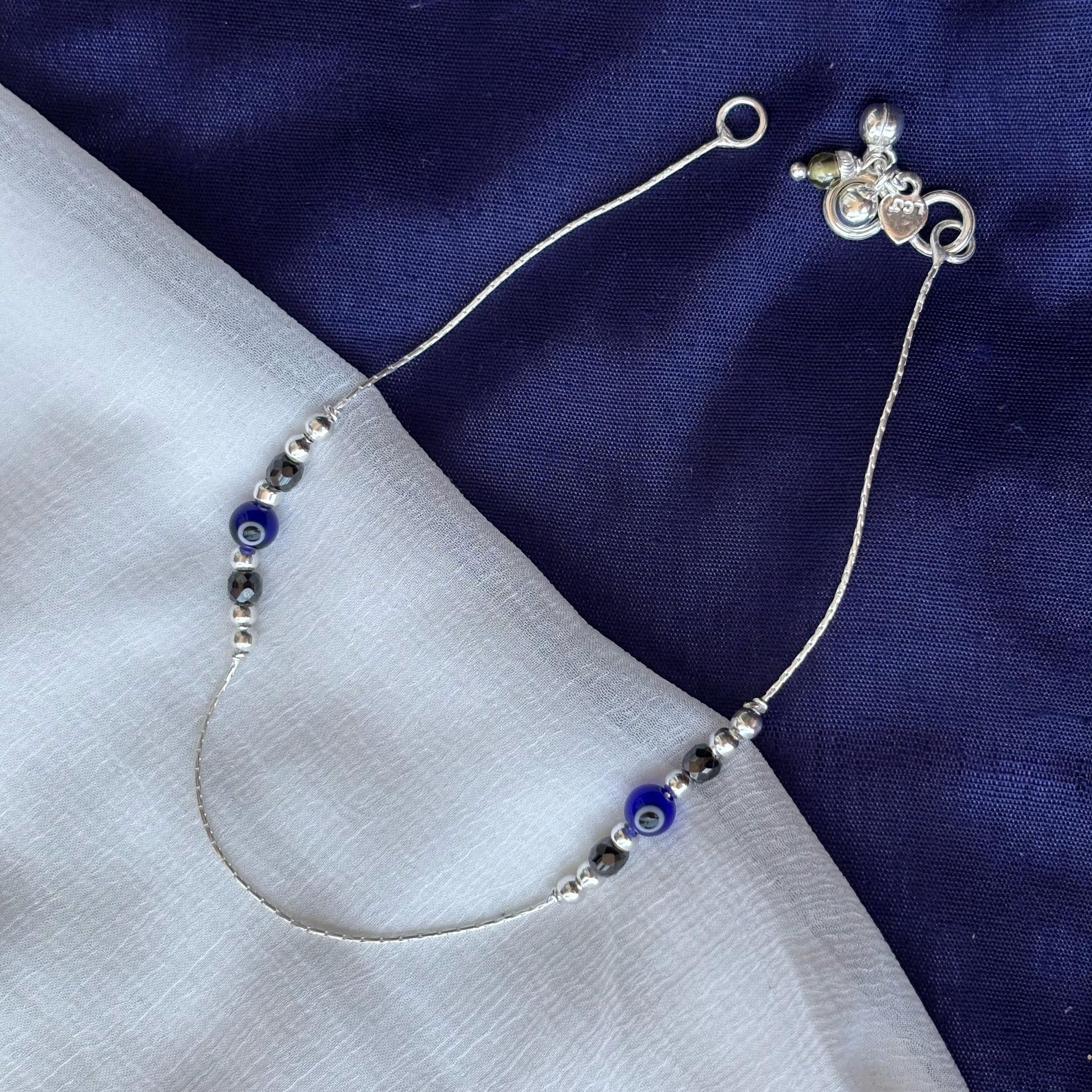 The charm of anklets resonates across cultures and times. The foot-tapping sounds of bells, the gleam of silver against the skin, and the intricate play of beads and chains are synonymous with grace and tradition. This Pure Silver Beaded Evil Eye Nazar Payal Anklet is a tribute to that time-honoured allure, reimagined for the modern world.